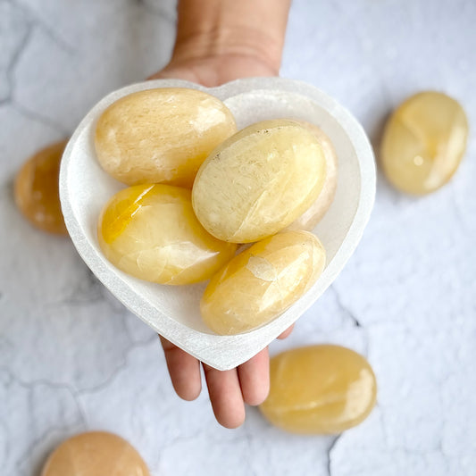 Yellow Calcite Palm Stone | Natural Polished Stone