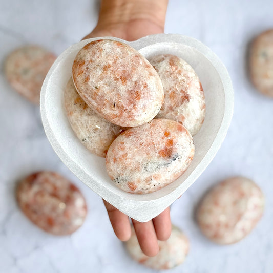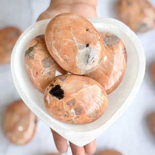 Peach Moonstone Palm Stone